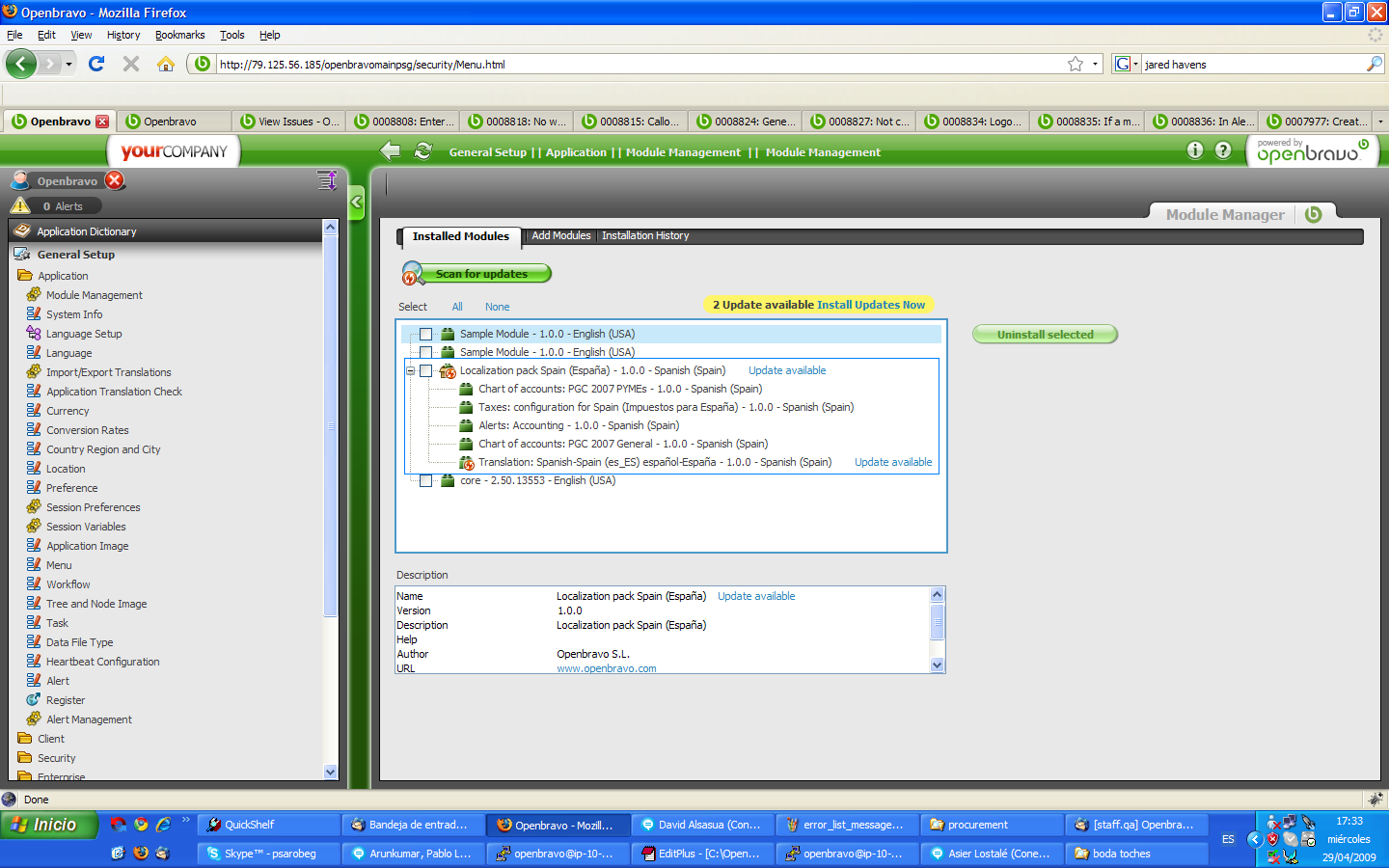 | 2009-04-29 17:37 | psarobe | Assigned To | alostale => eduardo_Argal |