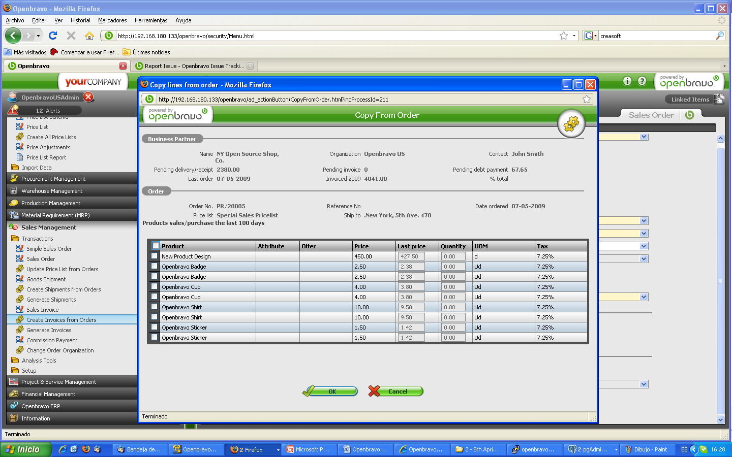 | defect | [Openbravo ERP] 07. Sales management | minor | always | 2009-05-07 16:33 | 2009-07-28 00:00 | |||