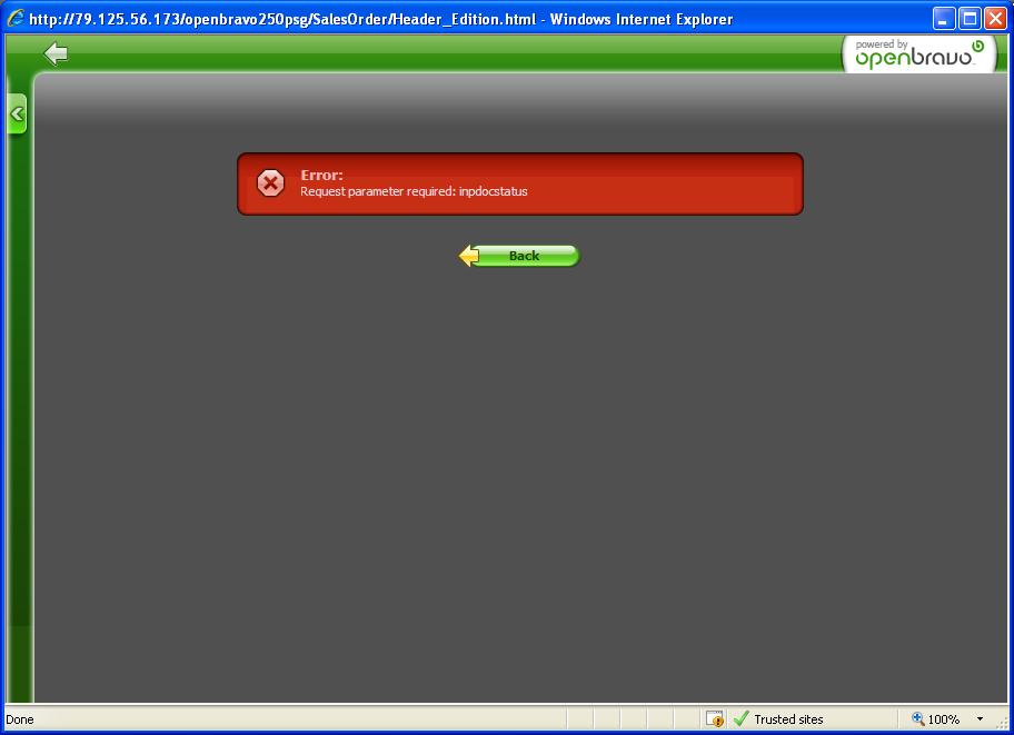 | Description | System throws error message as "Request parameter required: inpdocstatus" in Sales Order header page, once the user clicks the complete button after entering the required details. | |||||||