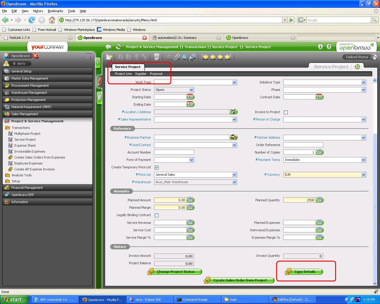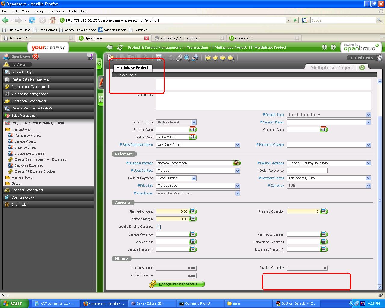| feature request | [Openbravo ERP] 08. Project and service management | minor | always | 2009-06-26 13:02 | 2011-02-04 09:12 | |||||||