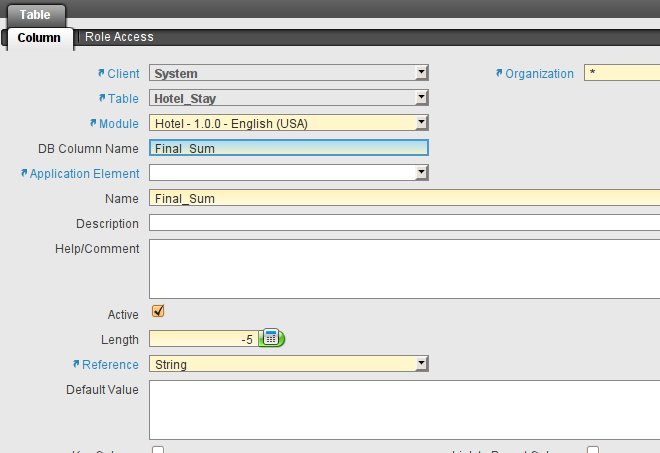 | Steps To Reproduce | Use this create table statement CREATE TABLE hotel_stay ( hotel_stay_id character varying(32) NOT NULL, ad_client_id character varying(32) NOT NULL, ad_org_id character varying(32) NOT NULL, isactive character(1) NOT NULL DEFAULT 'Y'::bpchar, created timestamp without time zone NOT NULL DEFAULT now(), createdby character varying(32) NOT NULL, updated timestamp without time zone NOT NULL DEFAULT now(), updatedby character varying(32) NOT NULL, hotel_room_id character varying(32) NOT NULL, hotel_guest_id character varying(32) NOT NULL, date_in timestamp without time zone NOT NULL, planned_nights numeric(2) NOT NULL DEFAULT 1, date_out timestamp without time zone, room_rate varchar(60) NOT NULL, final_sum numeric, CONSTRAINT hotel_stay_key PRIMARY KEY (hotel_stay_id), CONSTRAINT adclient_hotelstay FOREIGN KEY (ad_client_id) REFERENCES ad_client (ad_client_id), CONSTRAINT adorg_hotelstay FOREIGN KEY (ad_org_id) REFERENCES ad_org (ad_org_id), CONSTRAINT hotelroom_hotelstay FOREIGN KEY (hotel_room_id) REFERENCES hotel_room (hotel_room_id), CONSTRAINT hotelguest_hotelstay FOREIGN KEY (hotel_guest_id) REFERENCES hotel_guest (hotel_guest_id) ); | |||||||