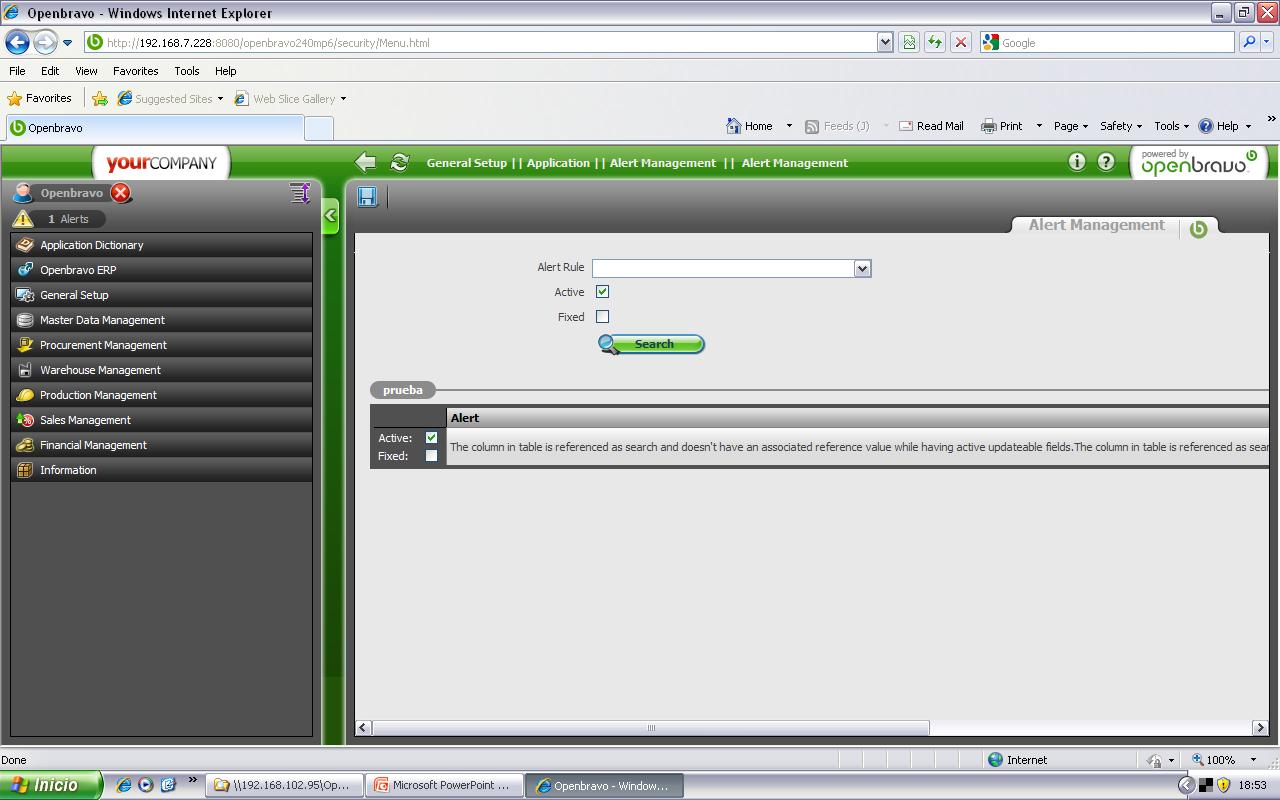 | Description | Alert with a large description, in the text of alert generated, dont have break lines, and text is showed in same line Only in Internet explorer, in firefox works correctly see attach file | |||||||